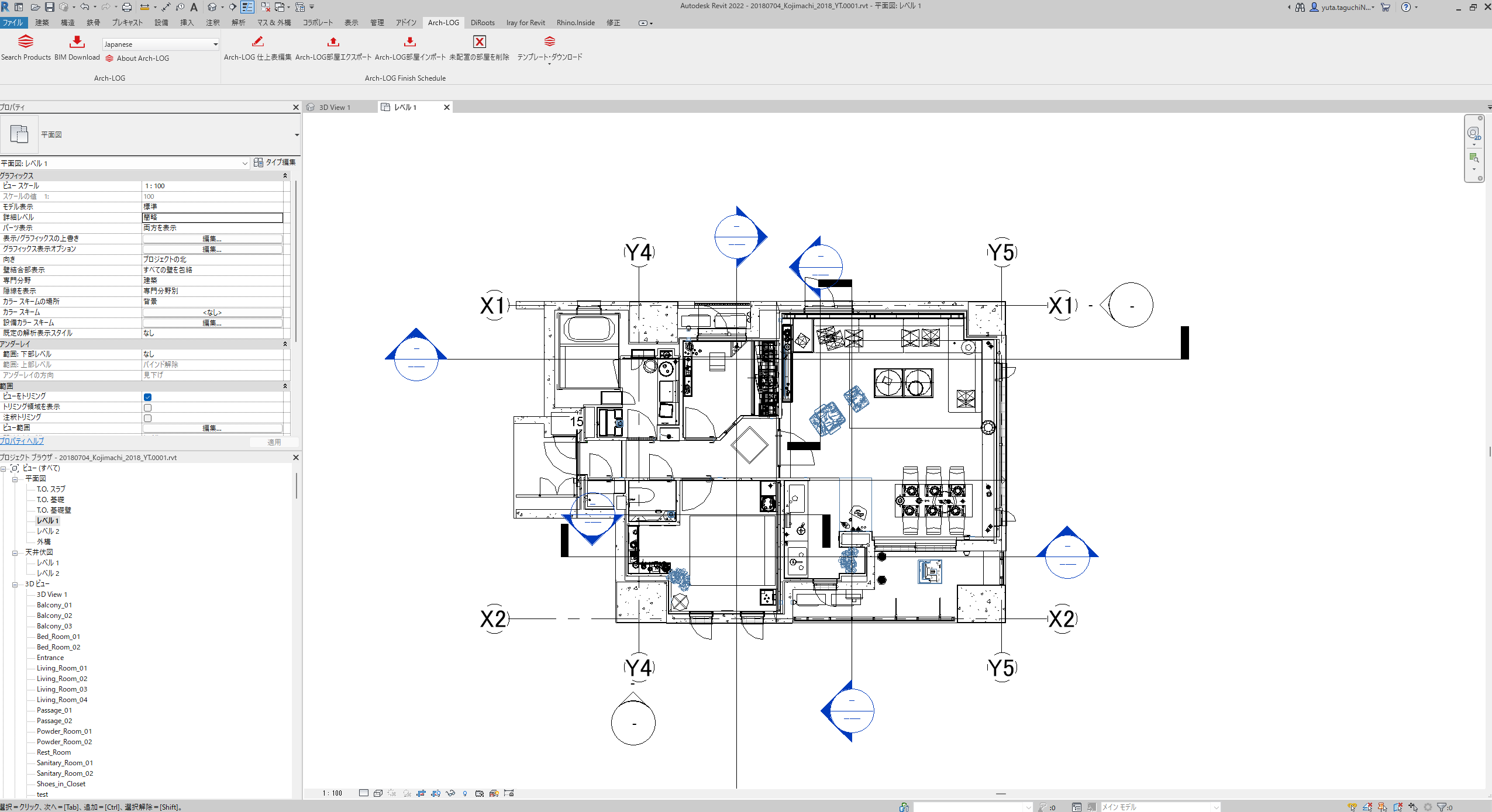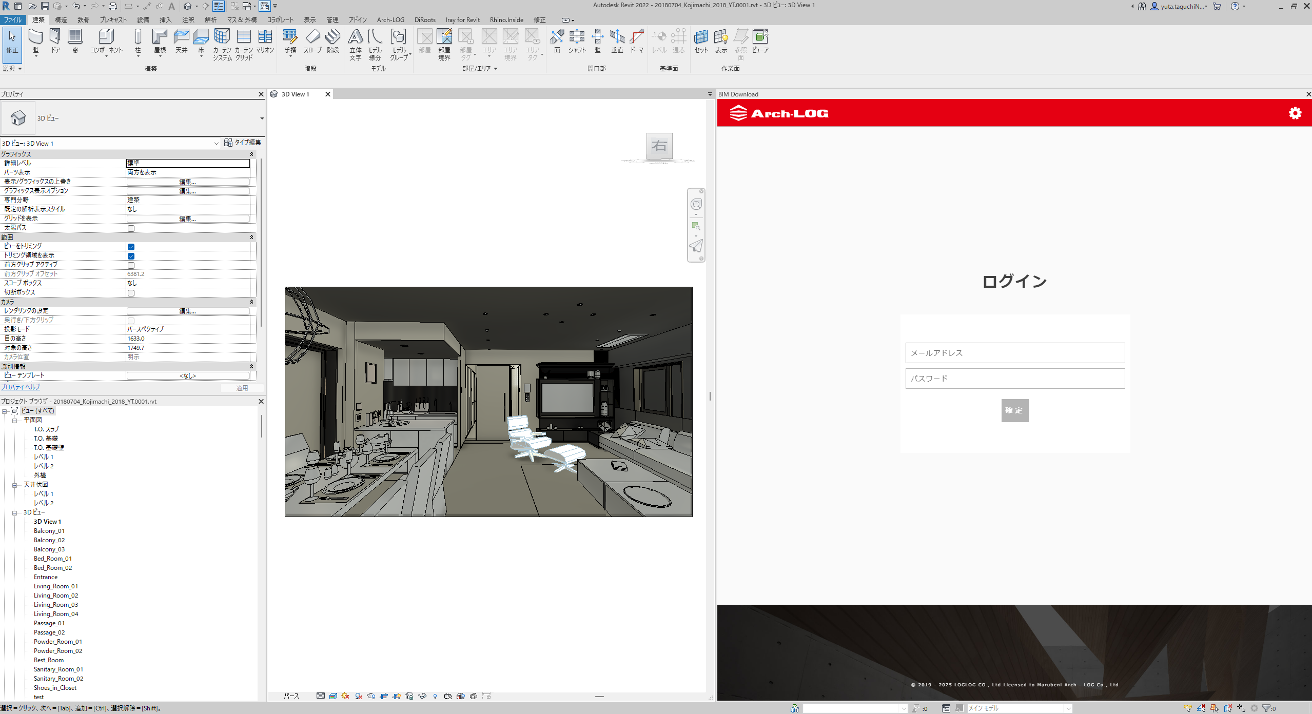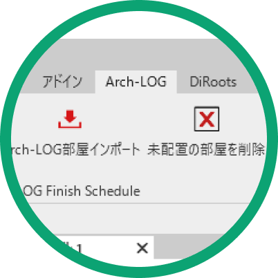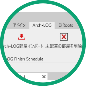 タブの中から「Arch-LOG」をクリック(2D、3Dビューのどちらでも可)。
