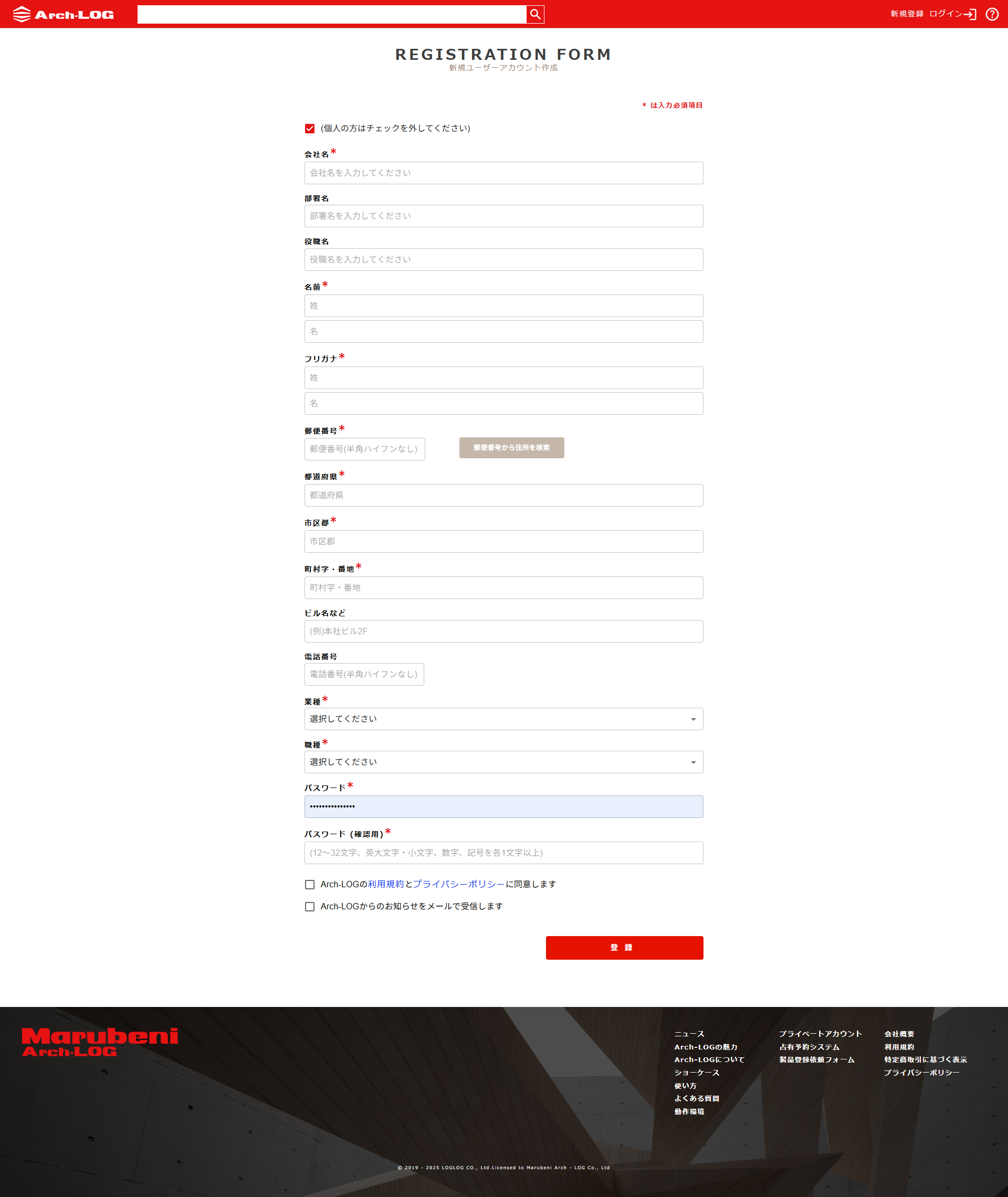 Arch-LOG利用のため、まずはアカウント登録をしましょう。