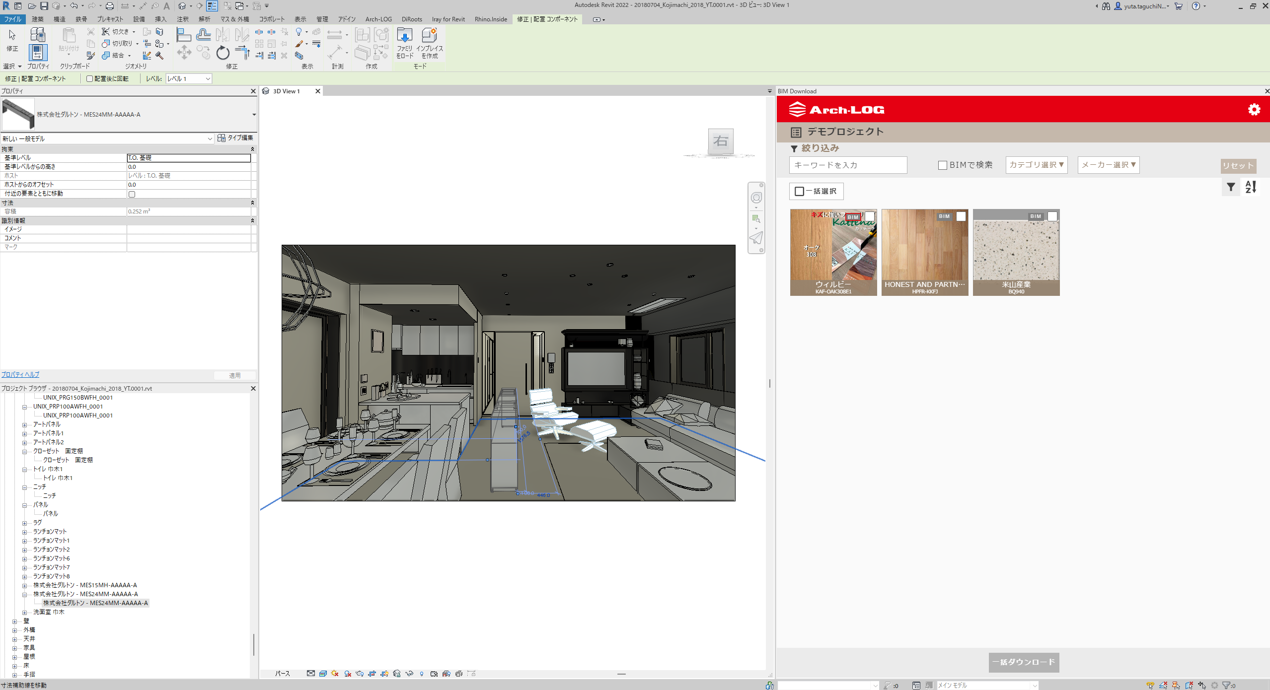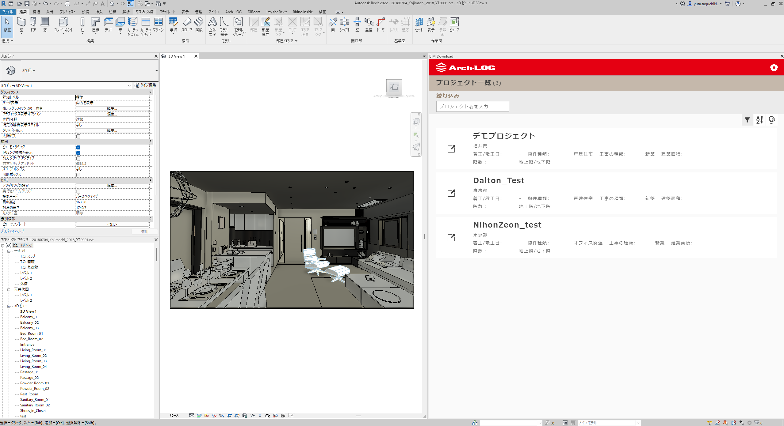 Arch-LOGが提供しているプラグインを活用することでRevitへのBIMデータ取り込みが簡単になった。縮尺がしっかりしている。