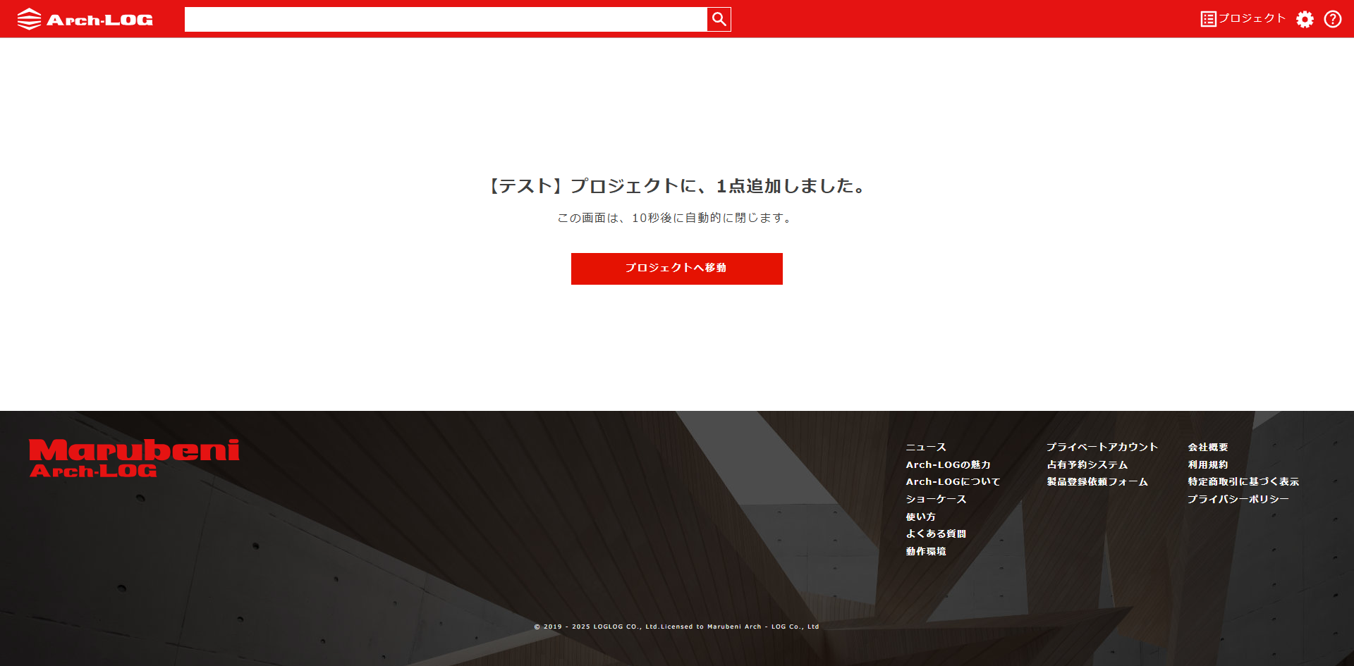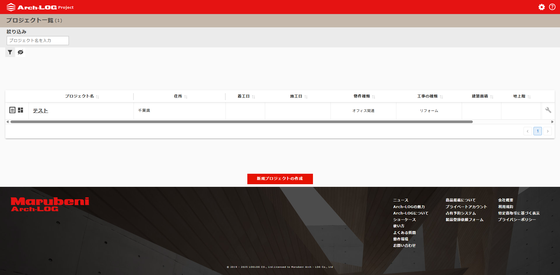 BIMデータをBIMソフトへダウンロードするために、Arch-LOG上でプロジェクトを作成します。