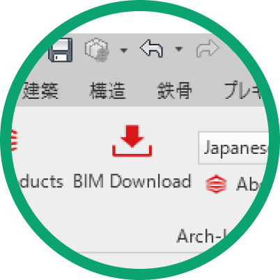 展開されたリボンから「BIM Download」をクリックします。