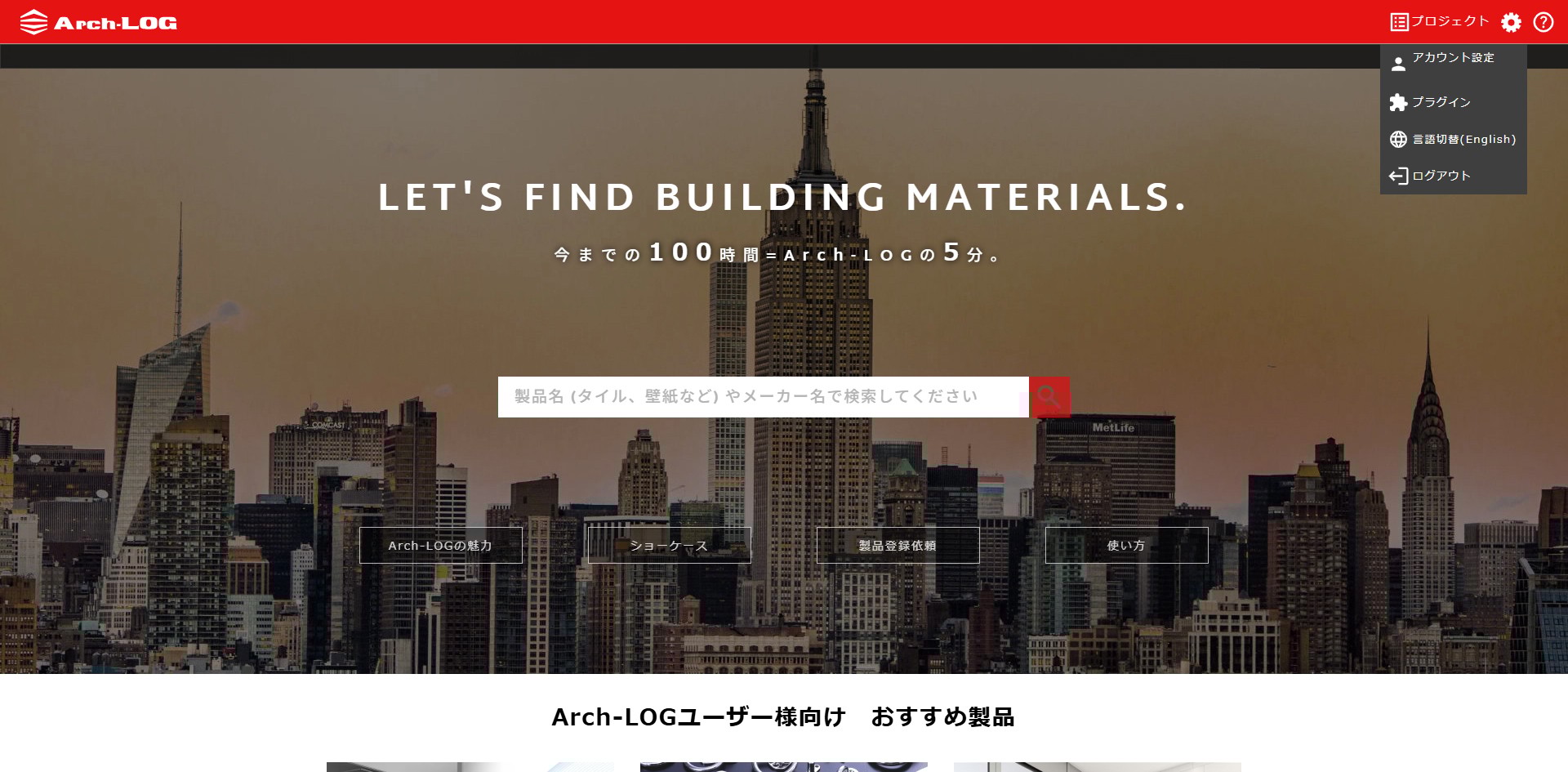 Arch-LOGにログインした状態で、トップページの歯車マークより、プラグインのボタンをクリック。